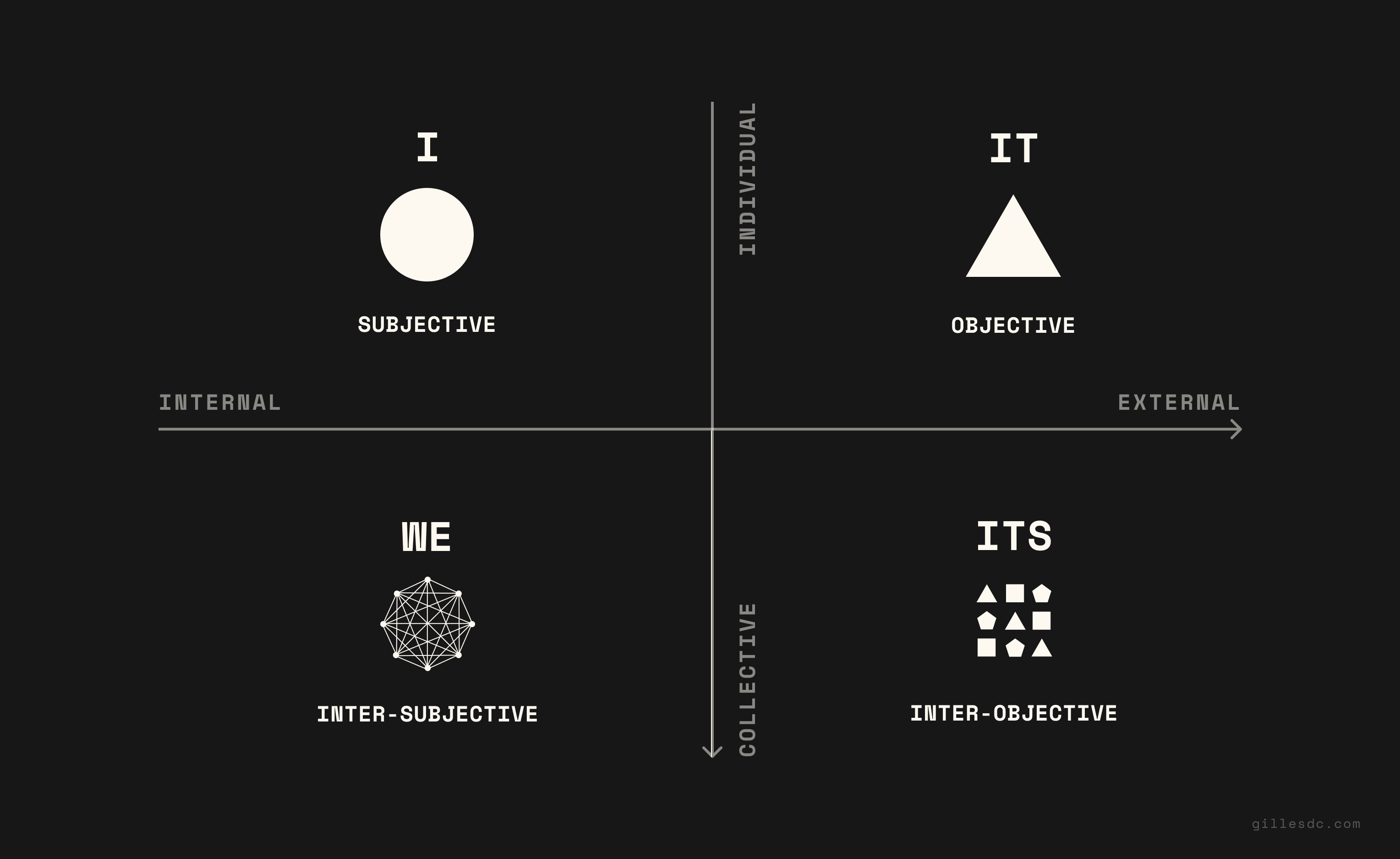 Intimate culture is what comes naturally between family and friends. At epic scale, culture replaces personal trust with grand stories we all believe in. Narratives like capitalism, democracy and Christianity, but also human rights, money and Nike. They have no grounds in the natural world, but are products of mind — crafted and shared through language — that become real as we collectively believe in them.