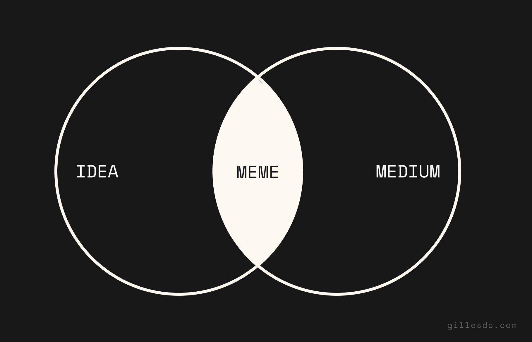 Book, car, pot, tweet or simply the words you use: a medium’s form and function define the meme to the point where they become one and the same. This plays out across multiple levels: